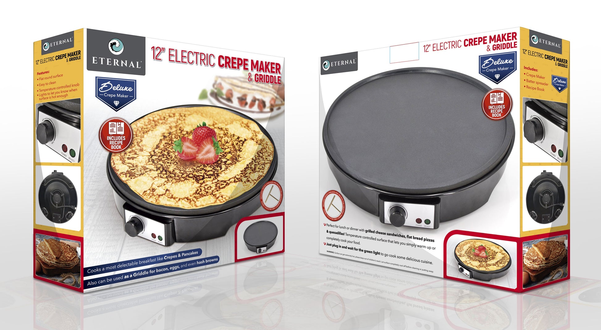 12-Inch Nonstick Electric French Crepe Maker with Recipe Book and Wooden Spatula