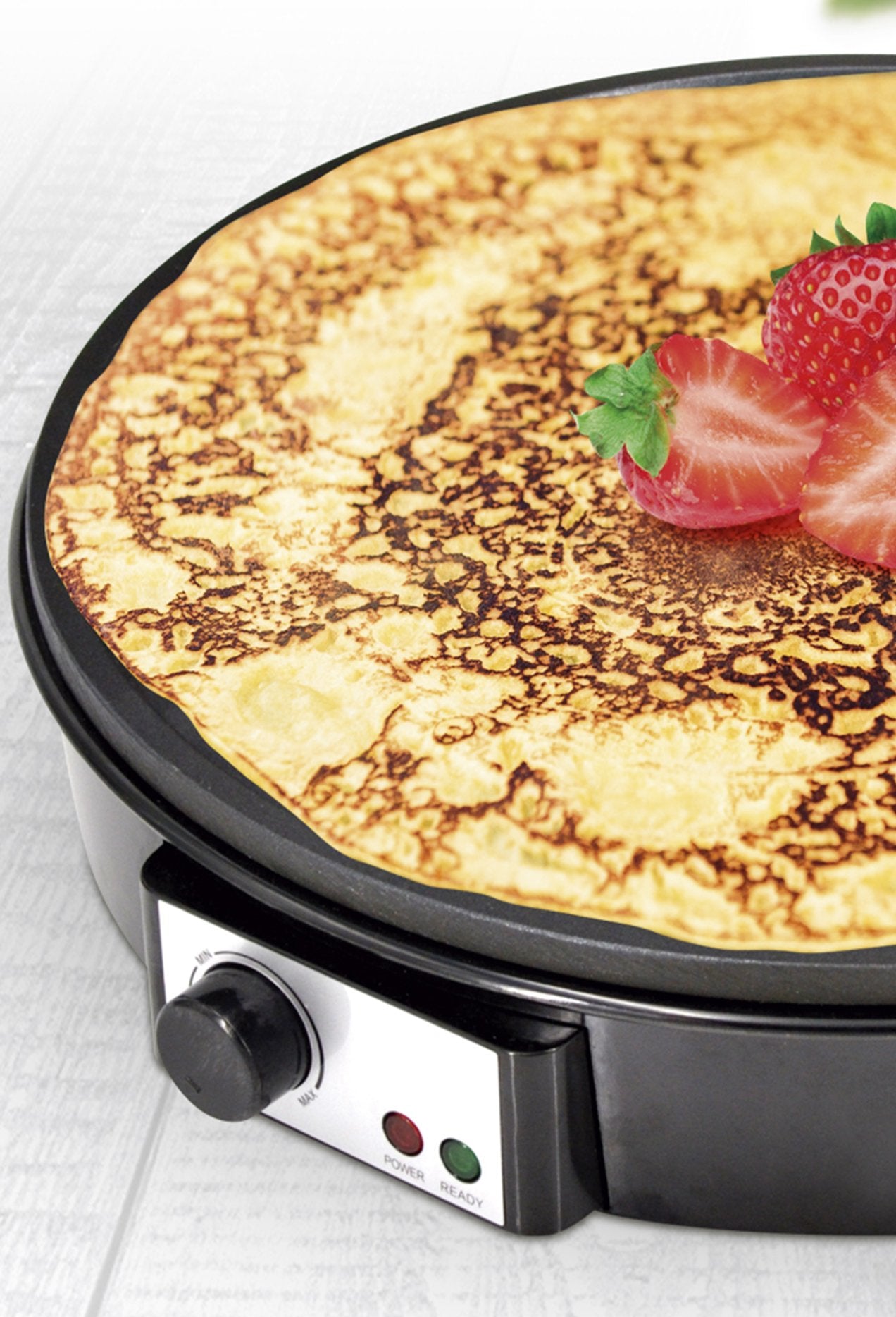Make stacks of pancakes, omelet, tortillas, flatbreads, bacon, breakfast even burgers. This griddle hot plate is ideal for small kitchens. Try new recipes with the includes book or your favorite ones. Create wonderful and tasty crepes with the included wooden spatula to correctly spread the batter over the griddle plate to make the thinnest possible crepes.