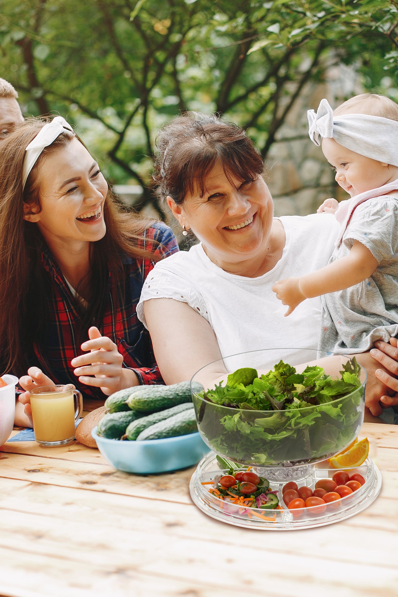 Large salad bowl can accommodate any kind of salad, greens, pasta, potato and the ice compartment keeps the dressing fresh.