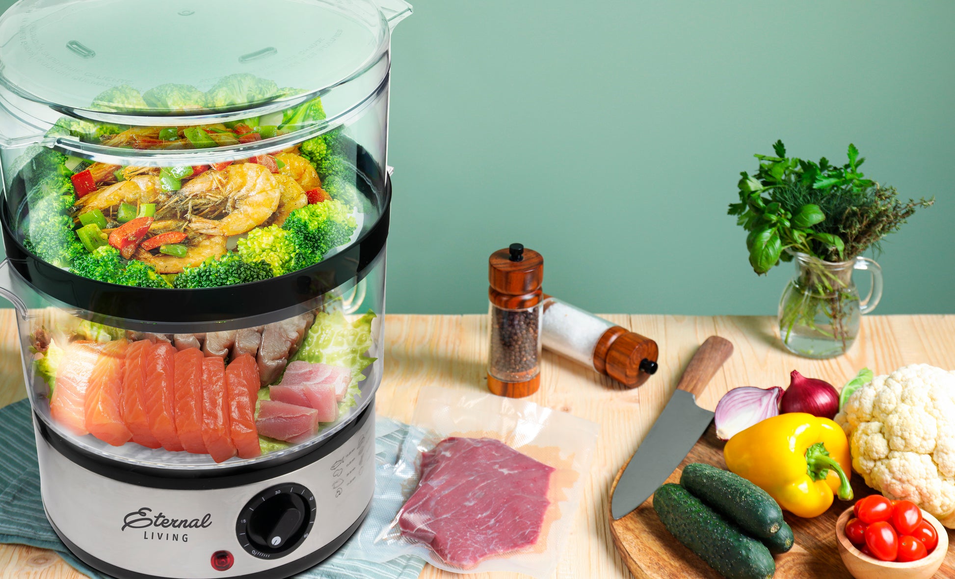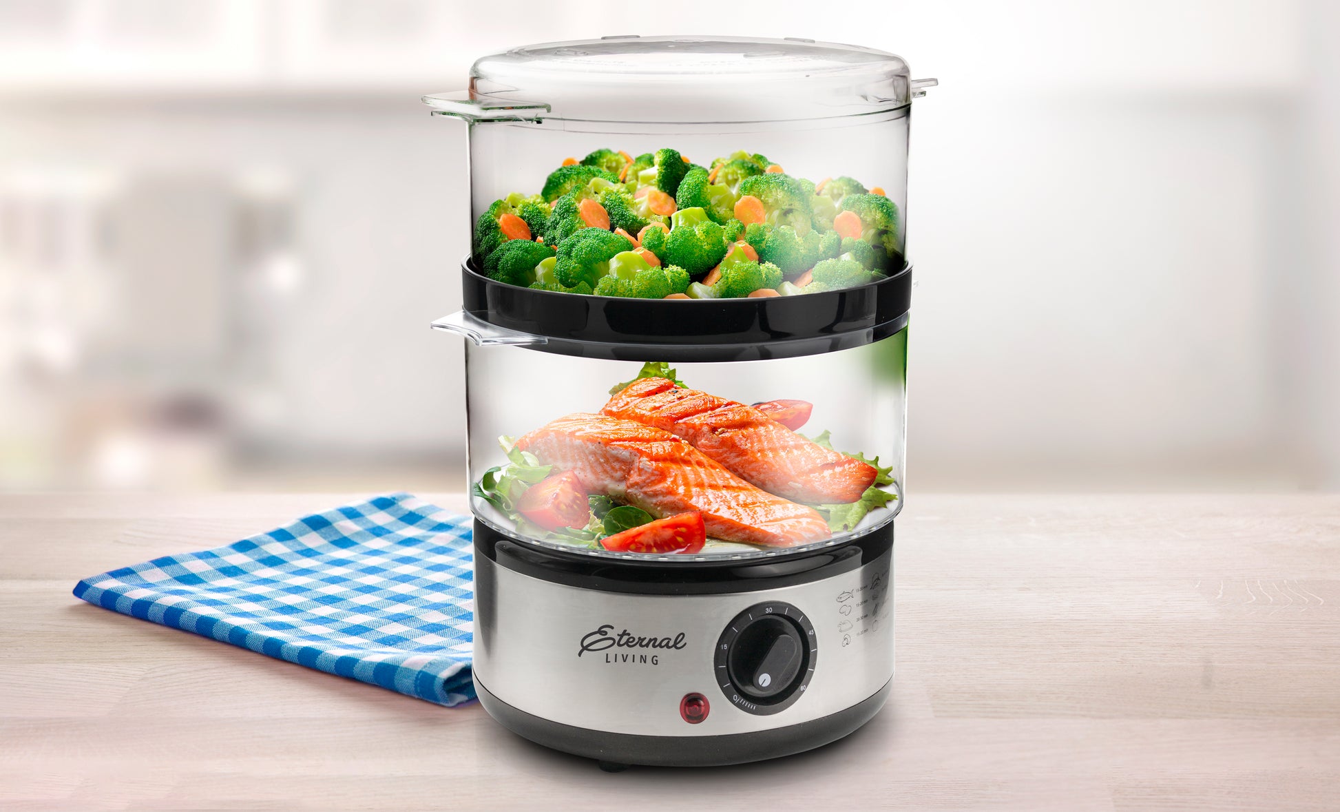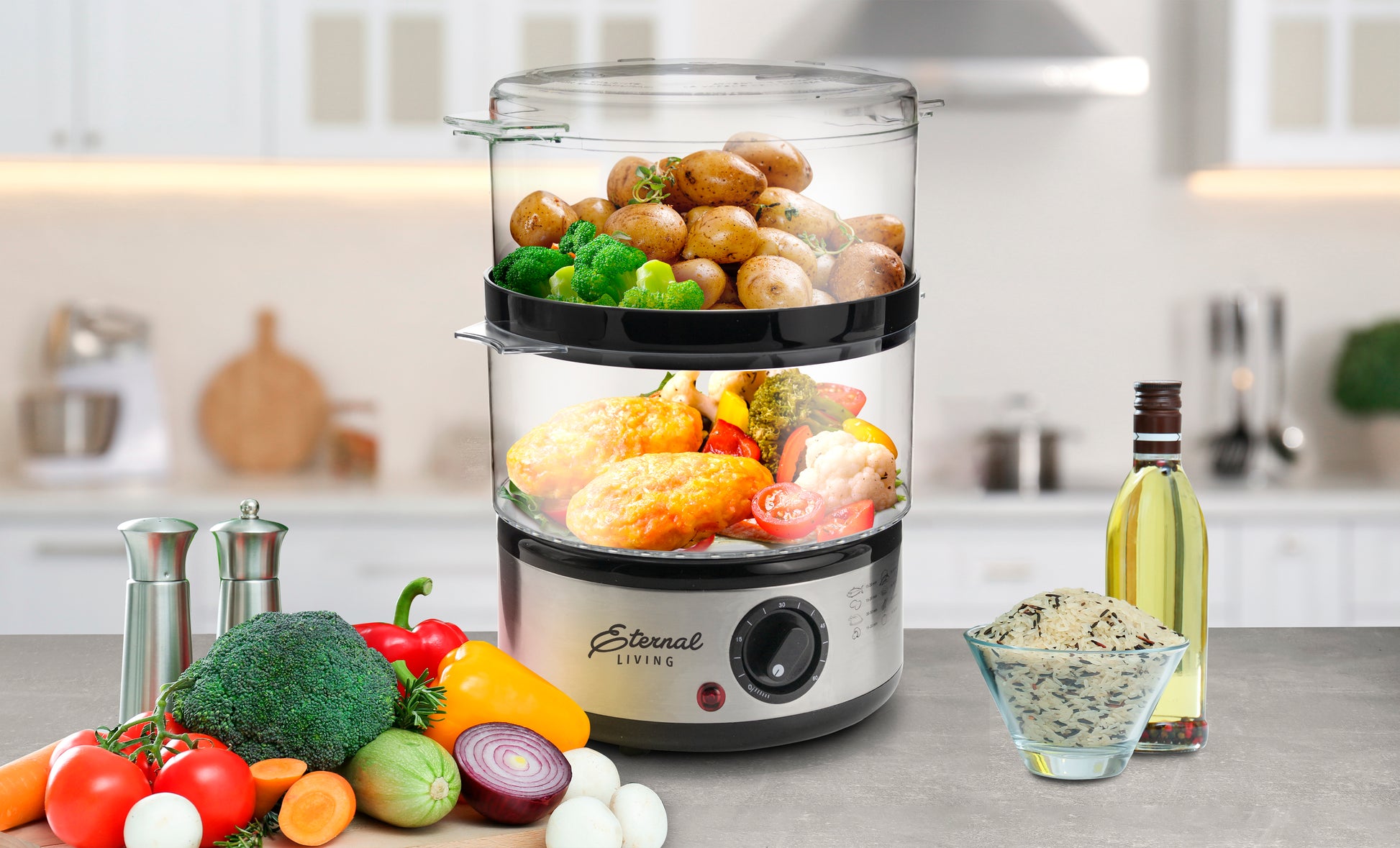 Easy-to-Use Two-Tier Food Steamer with Auto Timer – Perfect for Healthy Family Meals