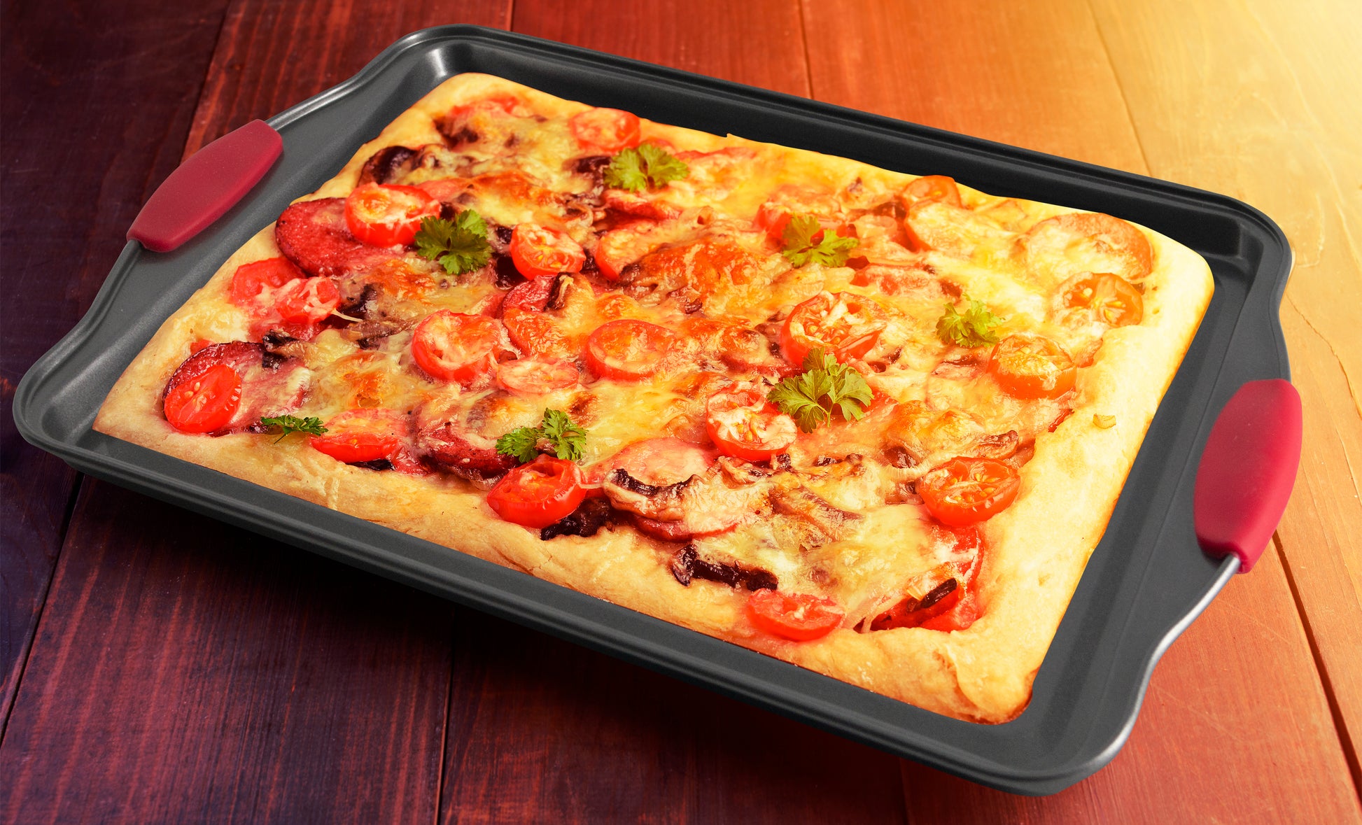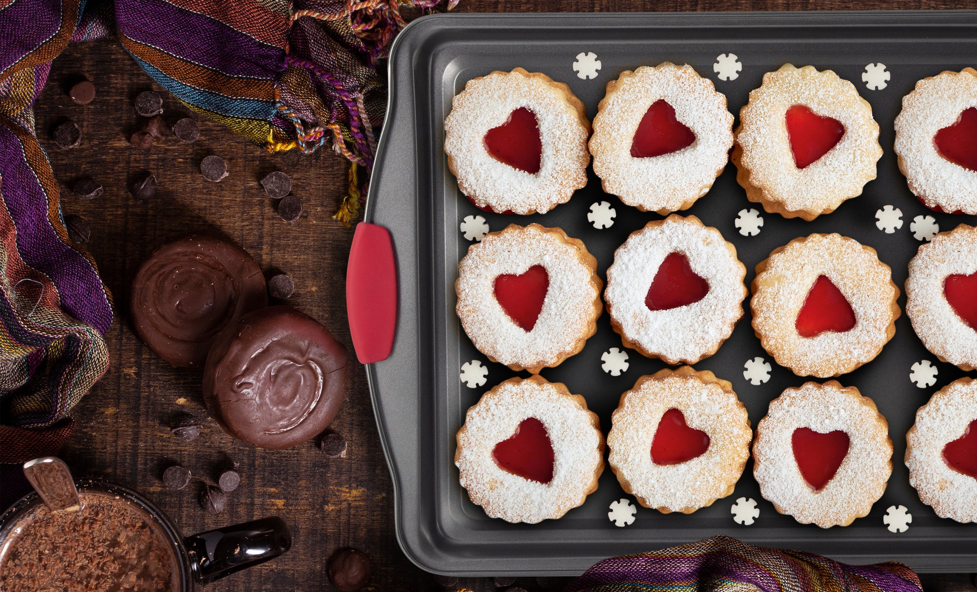 Cookie Sheets for Baking with Red Silicone Handles