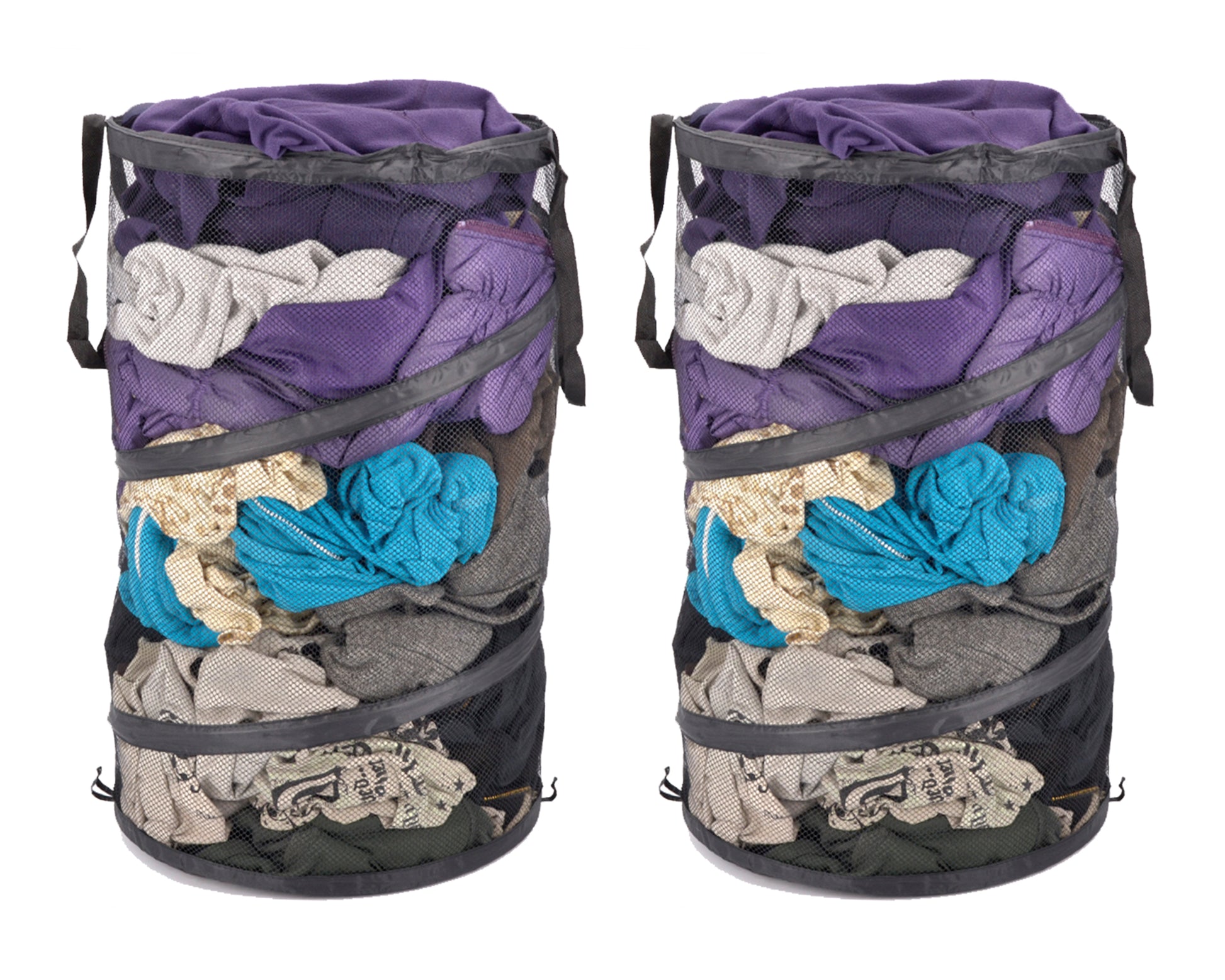 This lightweight hamper opens easily to hold a full load of laundry. It is made of durable mesh; this permits air to circulate throughout the hamper eliminating moisture and typical laundry hamper odors. Two sturdy handles at the top of the hamper make it easy to carry in one hand. Space saver!
