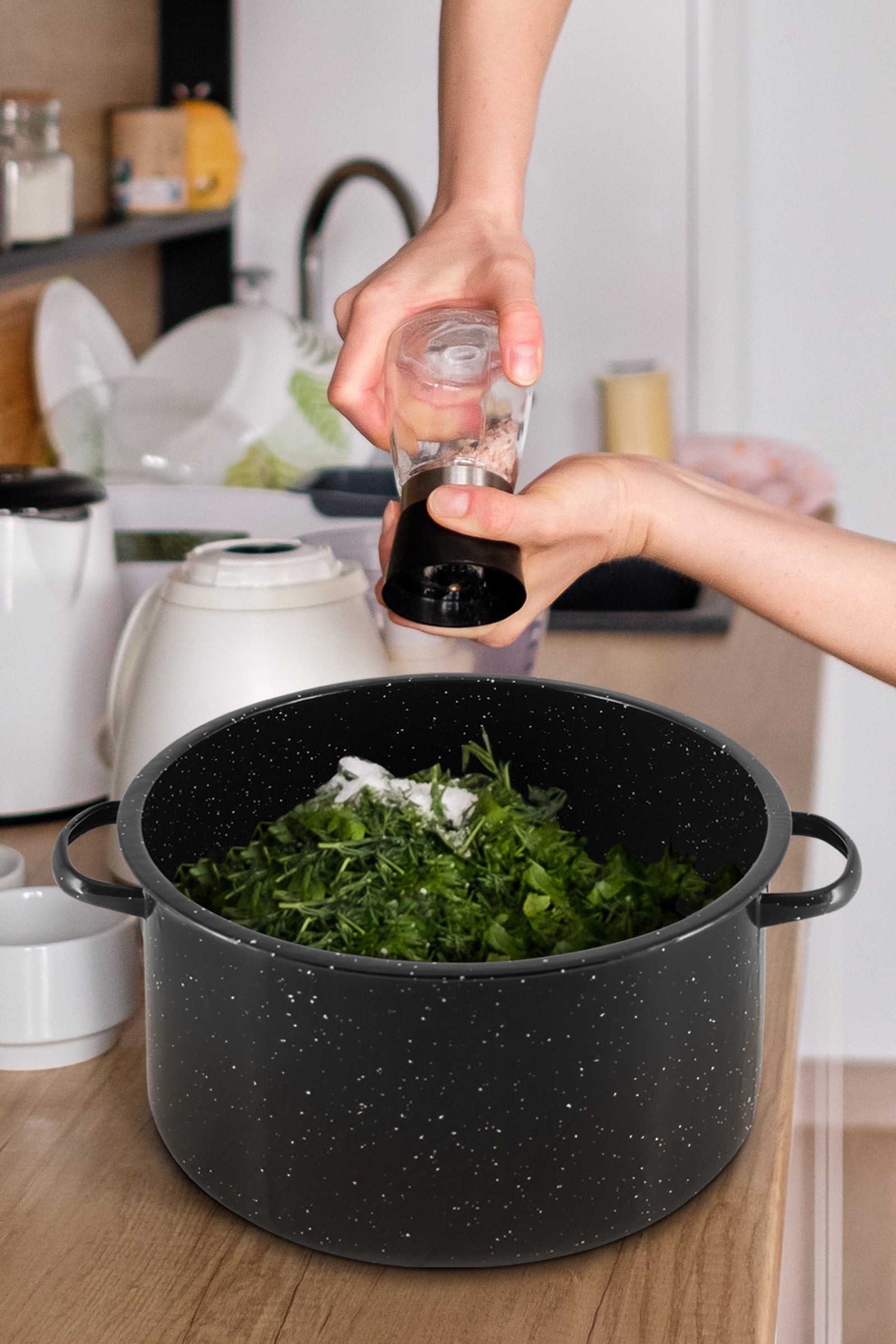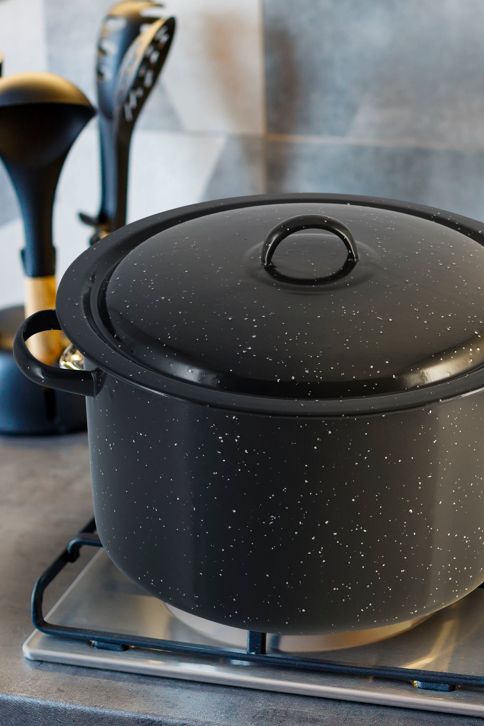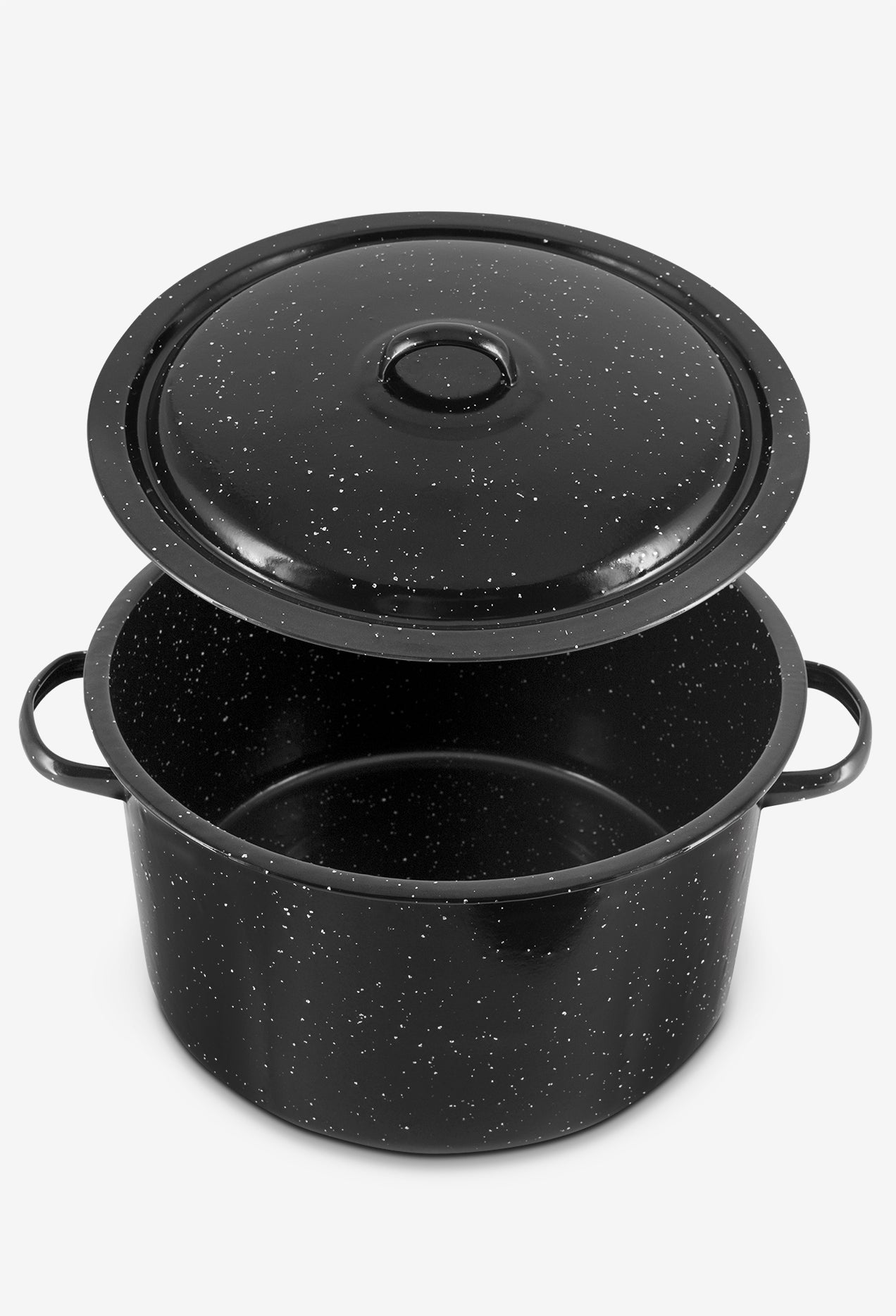 Perfect for simmering broths, soups, and sauces; for boiling lots of pasta. Pot has a carbon steel core for strength, conductivity and even heat distribution. Surface that is naturally non-stick and will not interact with or alter the taste, color or nutritional value of your healthy recipes. Great for soups and stews!