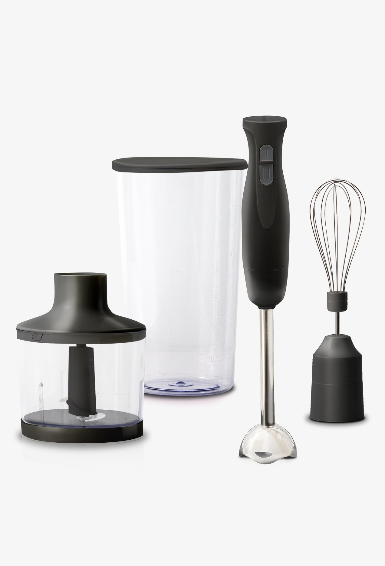 Immersion Hand Blender with Whisk Attachment, Measuring Cup & Chopper | Heavy Duty, Black