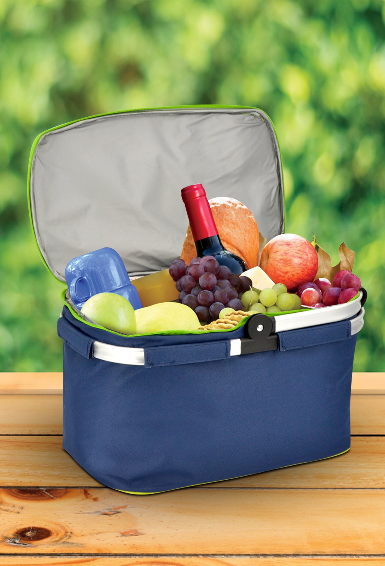 High quality fully insulated market basket with heat sealed leak-proof lining for easy cleaning - zipped closure to help keep food hot or cold