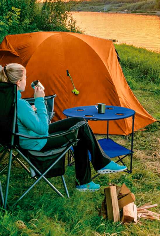 Practical and lightweight. Bring it with you for a day in the park or the beach and still have plenty of space in your car! Easy to assemble and made of heavy duty canvas, Aluminum frame ensures a solid surface and it has 4 mesh drink pockets. To top it off it has a lower level surface! Includes a carry bag with straps.
