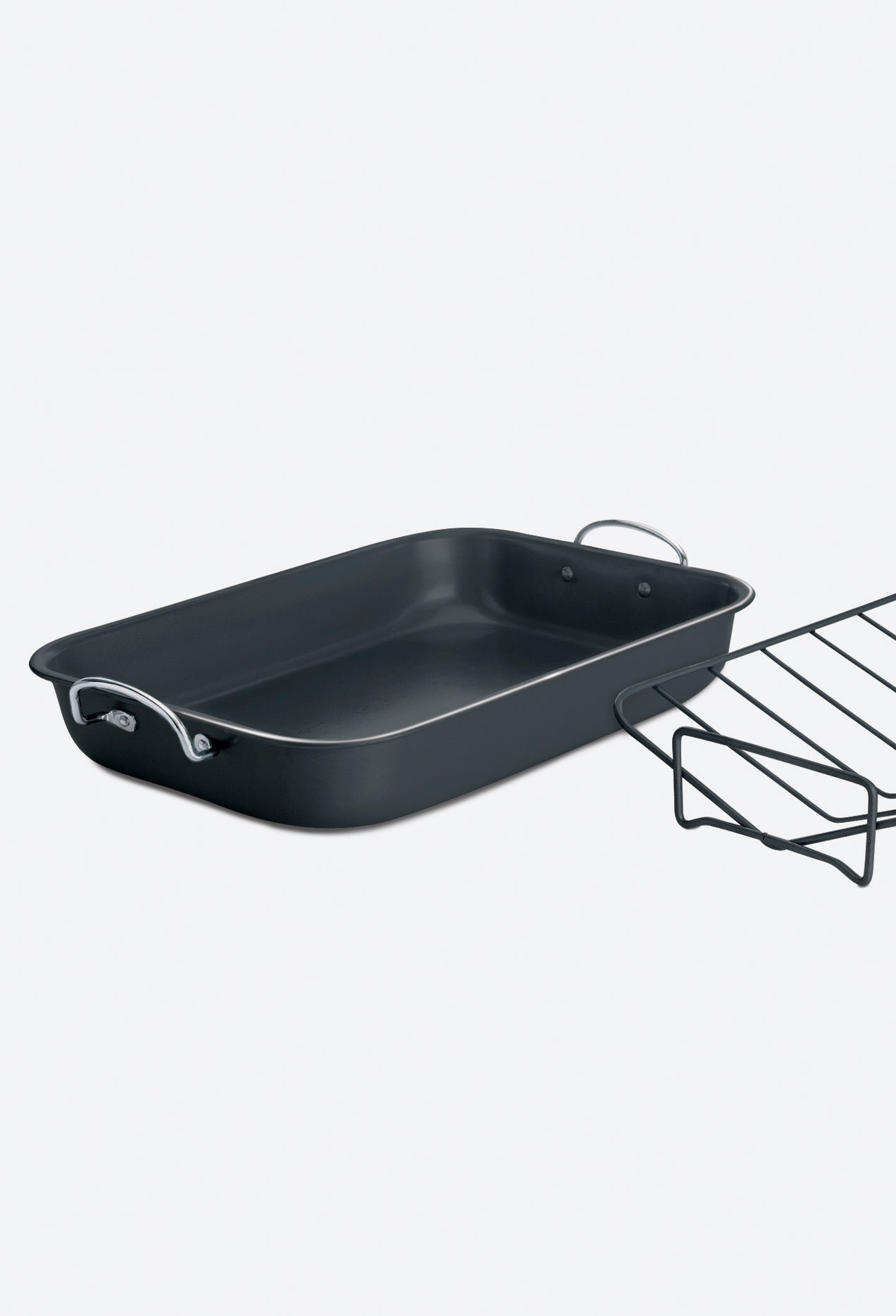 Superior cooking for years to come: heavy-duty steel roaster pan designed to resist warping for years of roasting performance