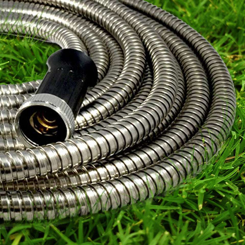 This stainless steel hose is the perfect short stainless steel garden hose for watering, gardening, washing and more!